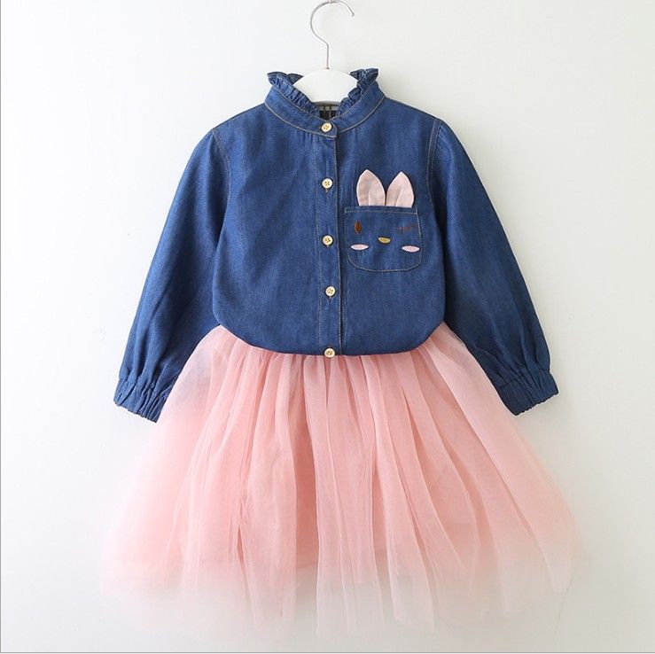 Girls Princess Dress Denim Shirt Tulle denim shirt tulle skirt toddler