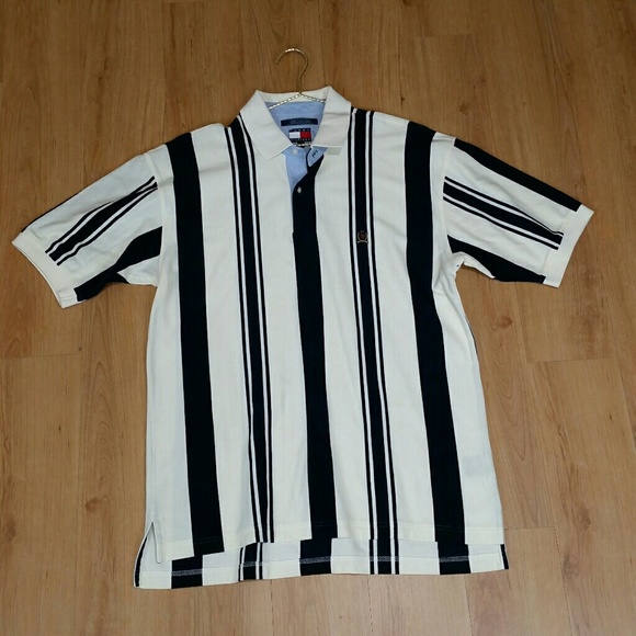 Men Vtg Tommy Hilfiger Polo Shirt vertical striped polo shirt mens