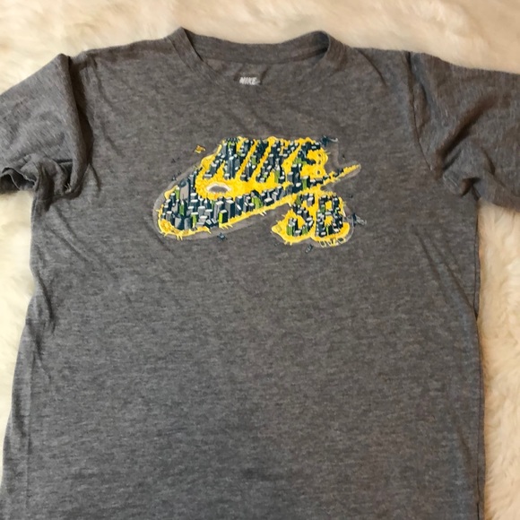 grey and yellow nike shirt