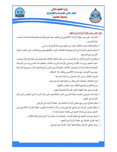 مهام عمل رئيس لجنة الارشاد في المعهد